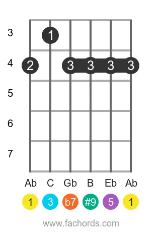 How To Play The Ab Dominant Seventh Sharp Ninth Added chord on guitar