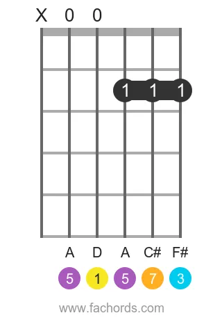 D maj7 chord Notes: