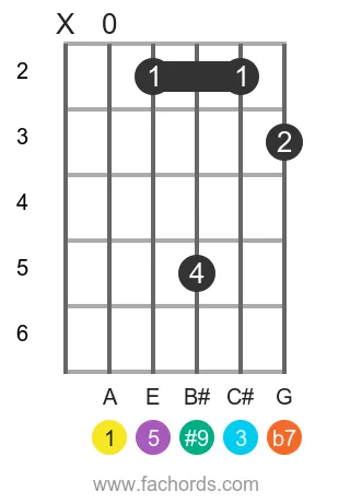 A Dominant Seventh Sharp Ninth Added Guitar Chord Fingers Positions