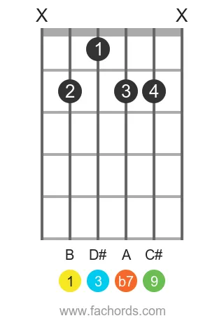 B Dominant Ninth Guitar Chord Diagrams