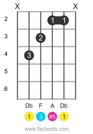 Db Aug Guitar Chord | Play, Hear and Practice Interactively