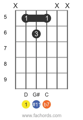 You can also use this accessible D7(#11) chord page, with written diagram instructions and screen-reader support for blind users.